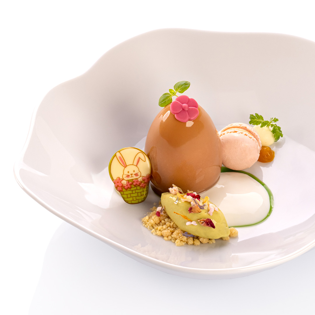 „Zające w Koszyczkach” to zestaw dekoracji czekoladowych w zróżnicowanej kolorystyce, inspirowanych klasycznym motywem wielkanocnym o wymiarach 25 x 35mm. Starannie dopracowane formy oraz harmonijna kolorystyka nadają dekoracjom elegancki, ponadczasowy charakter, idealnie wpisujący się w jubileuszową kolekcję wielkanocną.